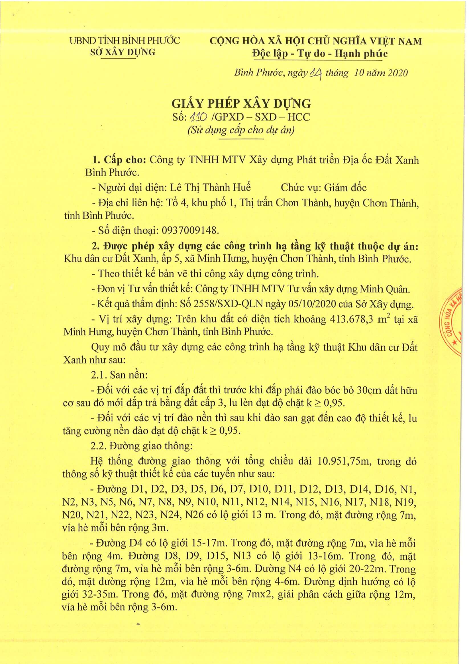 Giấy phép Xây dưng Dự án Đất Xanh