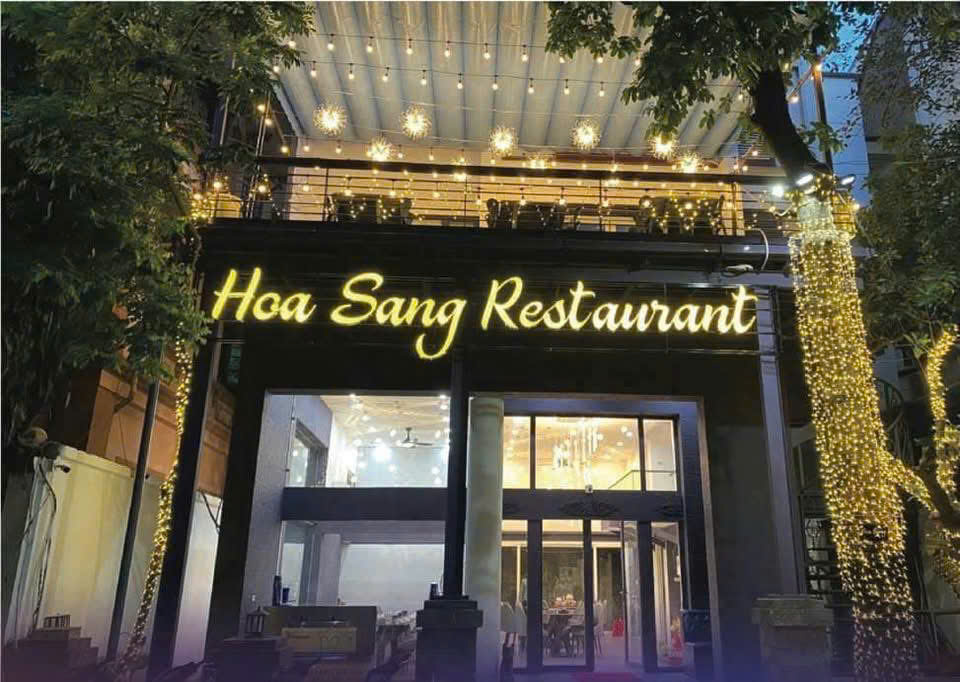 Hoa Sang Restaurant - BT25 60 Nguyễn Thị Định. Đến với Hoa Sang quý khách sẽ được thưởng thức những món ăn đồng quê, đặc sản các món ăn vùng miền, cùng với đông đảo đội ngũ đầu bếp có nhiều năm kinh nghiệm trong bếp Âu, Á sẽ tạo ra những món ăn đặc sắc. Ngoài ra khách hàng còn được thưởng thức những món ăn ngon trong không gian sân vườn thoáng mát cùng hệ thống phòng ăn VIP trang trí sang trọng, kết hợp cùng dàn âm thanh chuẩn Quốc tế sẽ tạo nên một bữa tiệc vui vẻ, ấm áp. Hoa Sang Restaurant một điểm hẹn lý tưởng để tiếp khách, tổ chức sinh Nhật, liên hoan Công Ty.
